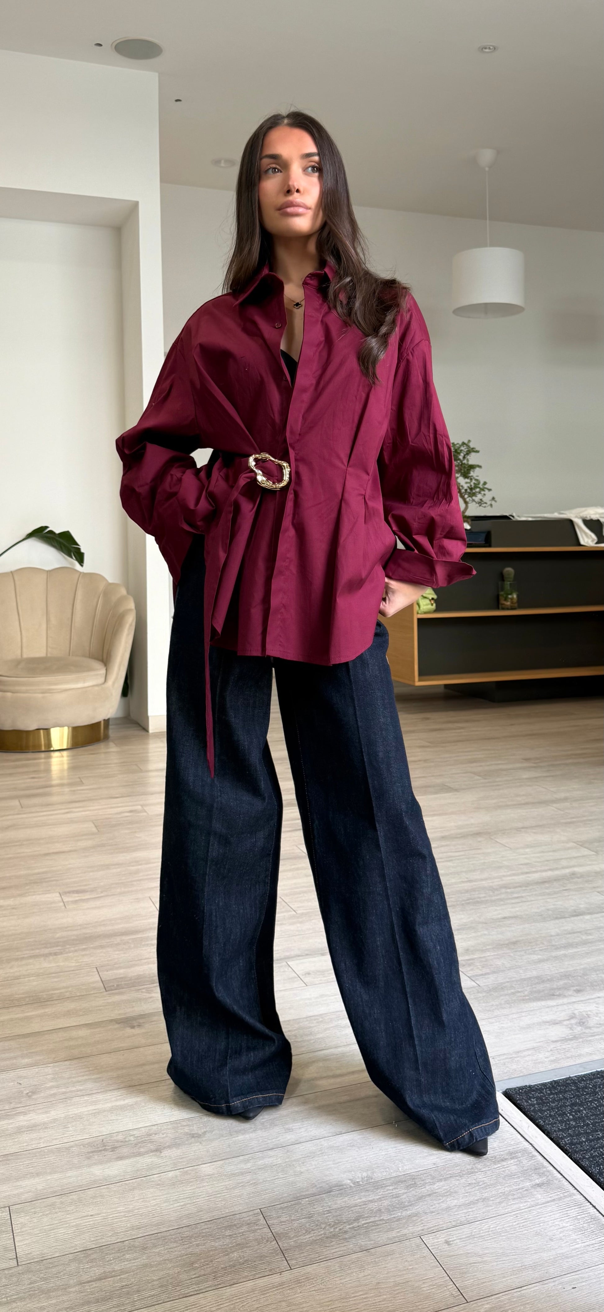 Camicia bordeaux con dettaglio dorato