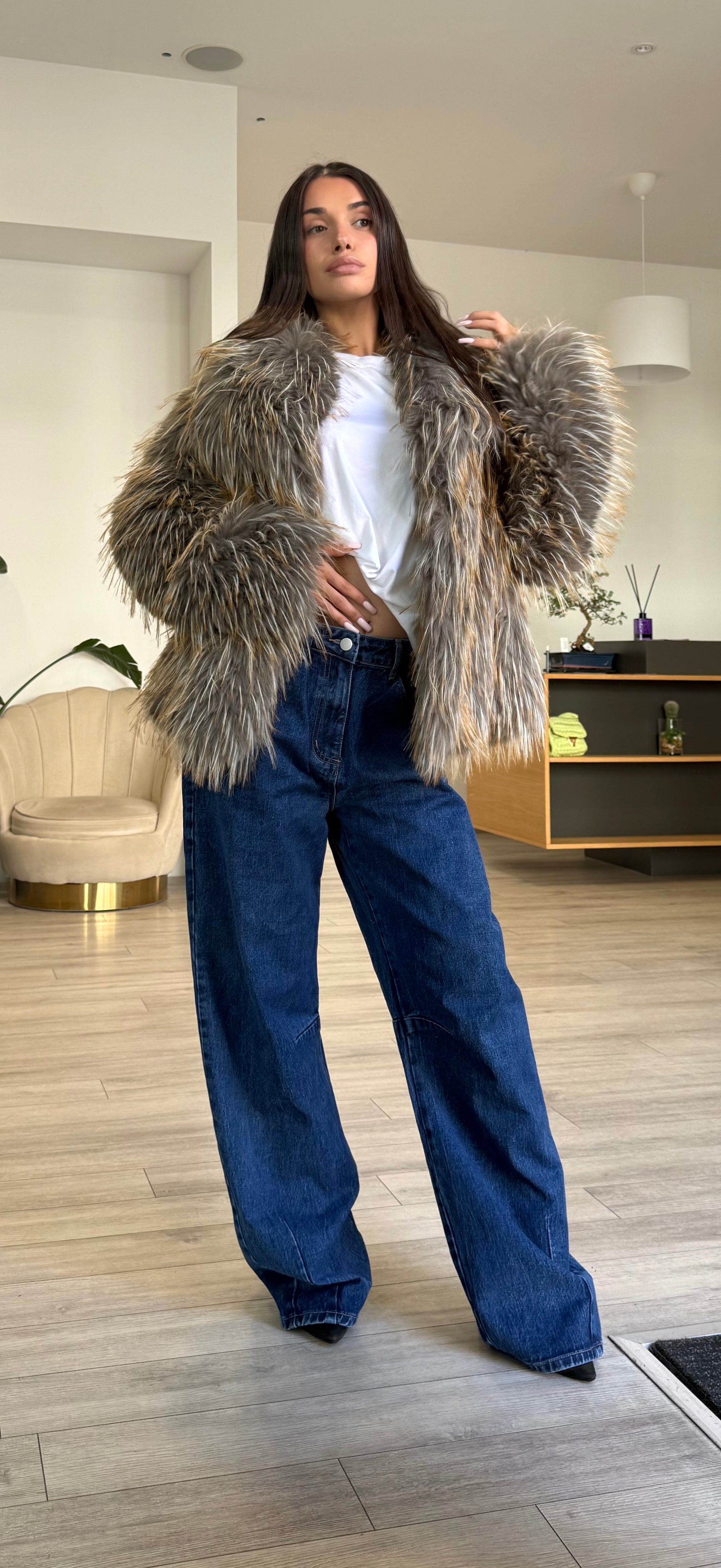 Eco-pelliccia con pelo dritto