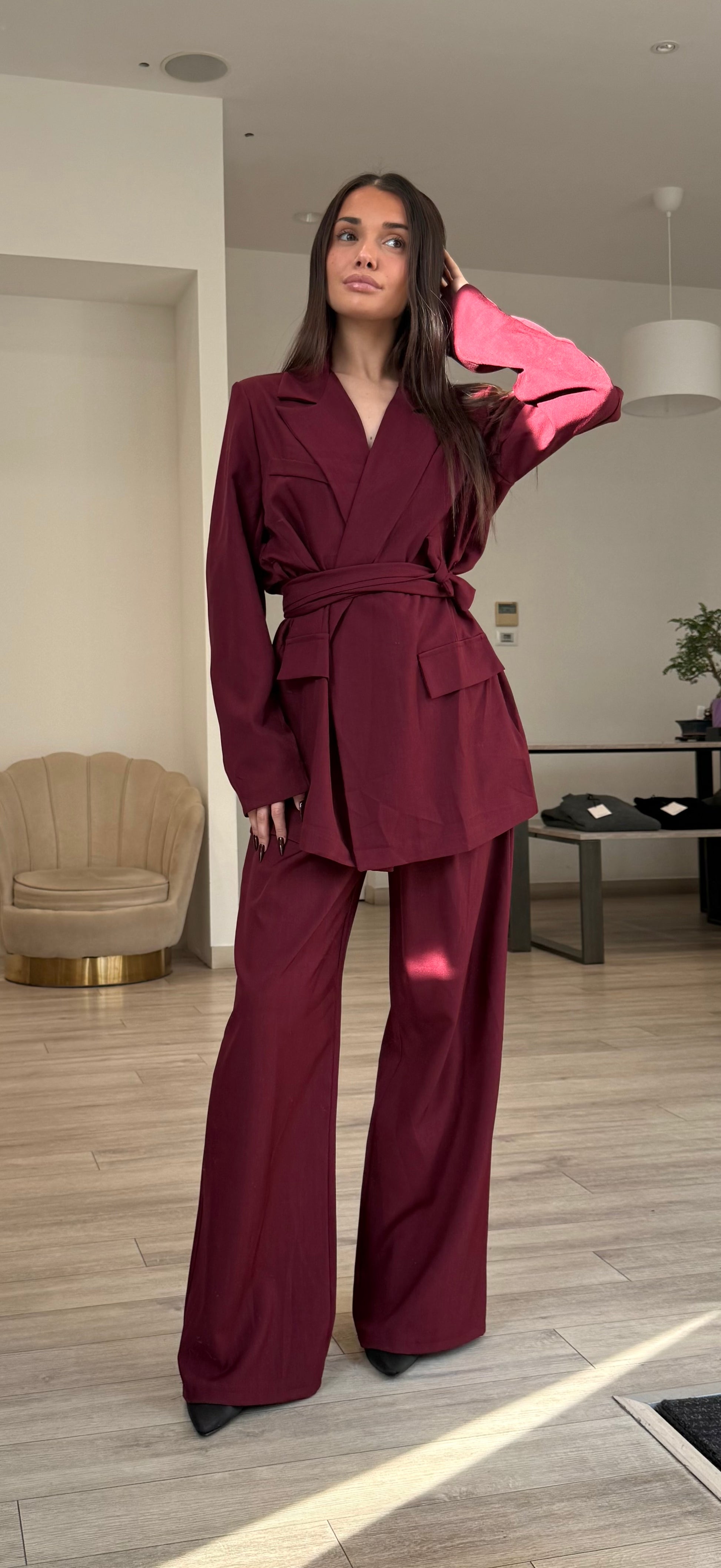 Completo composto da blazer e pantalone con laccio