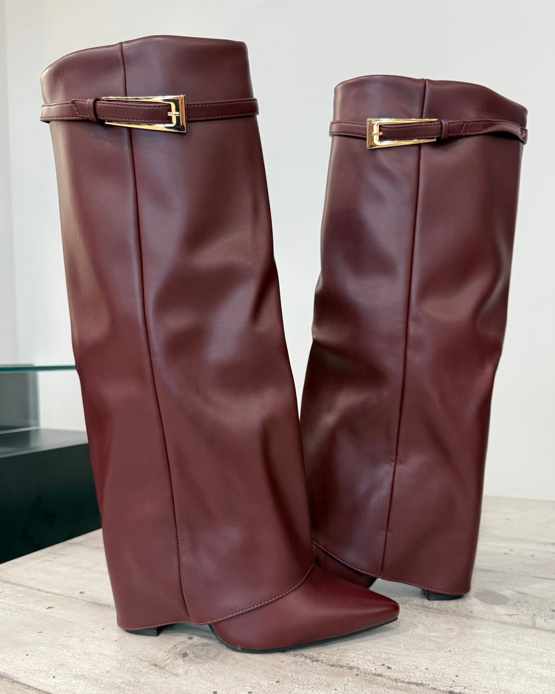 Stivale colore bordeaux con dettaglio dorato in ecopelle
