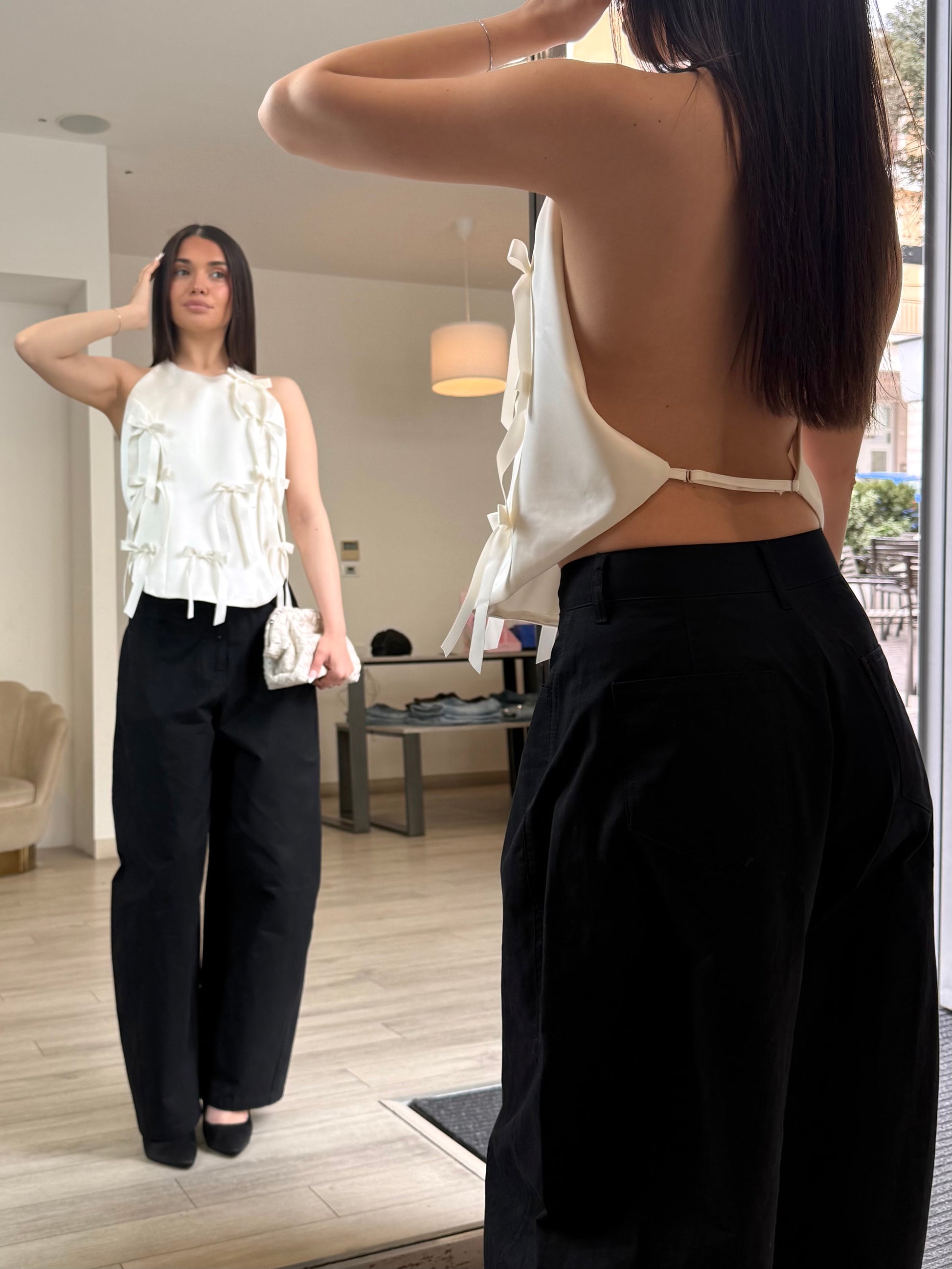 Top strutturato con fiocchi e schiena scoperta